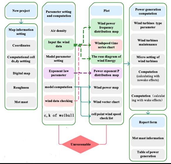WEPAS mainly includes four major parts: terrain information processing, mode analysis, energy production generation and graphics reports, as shown below
